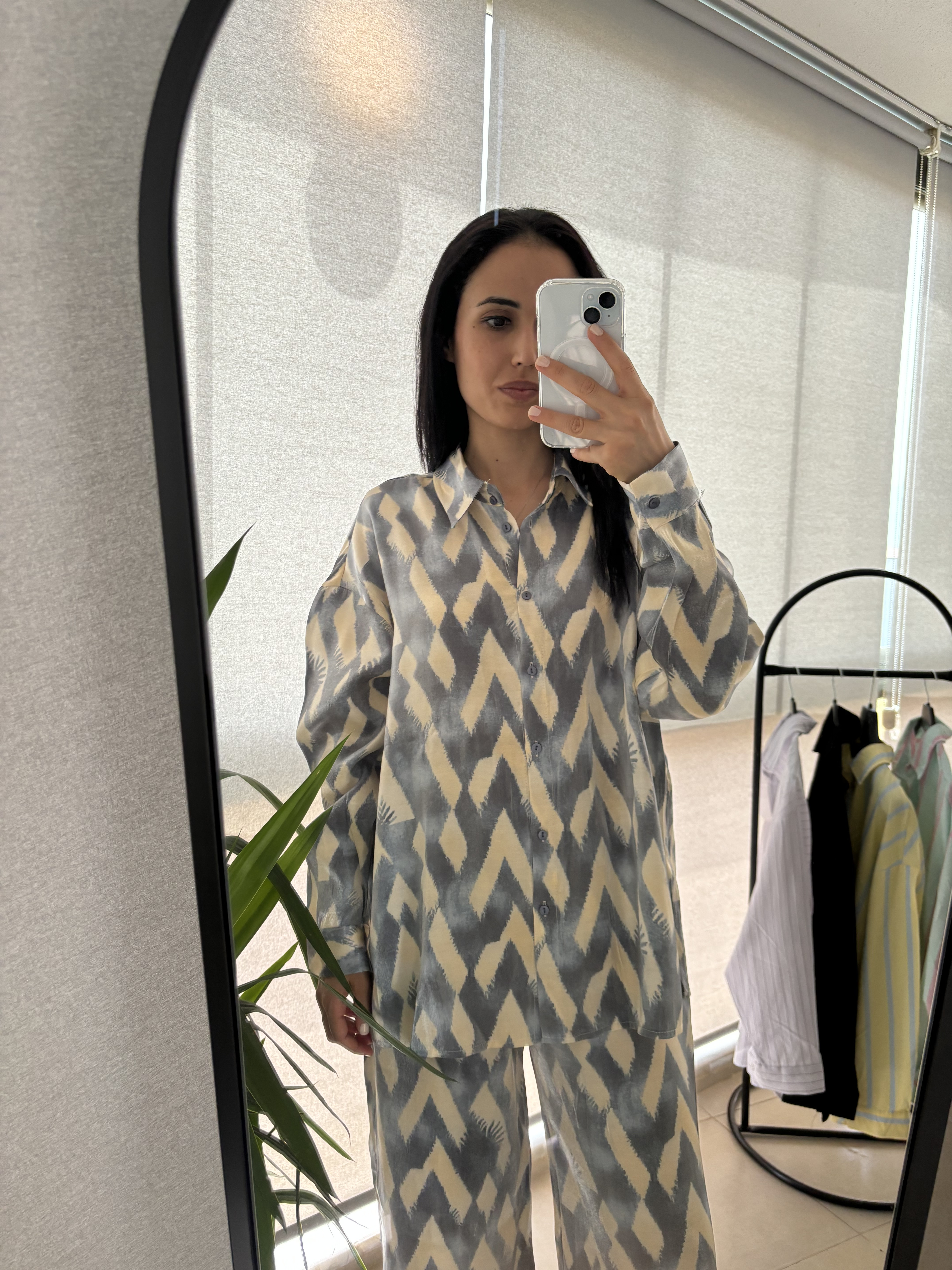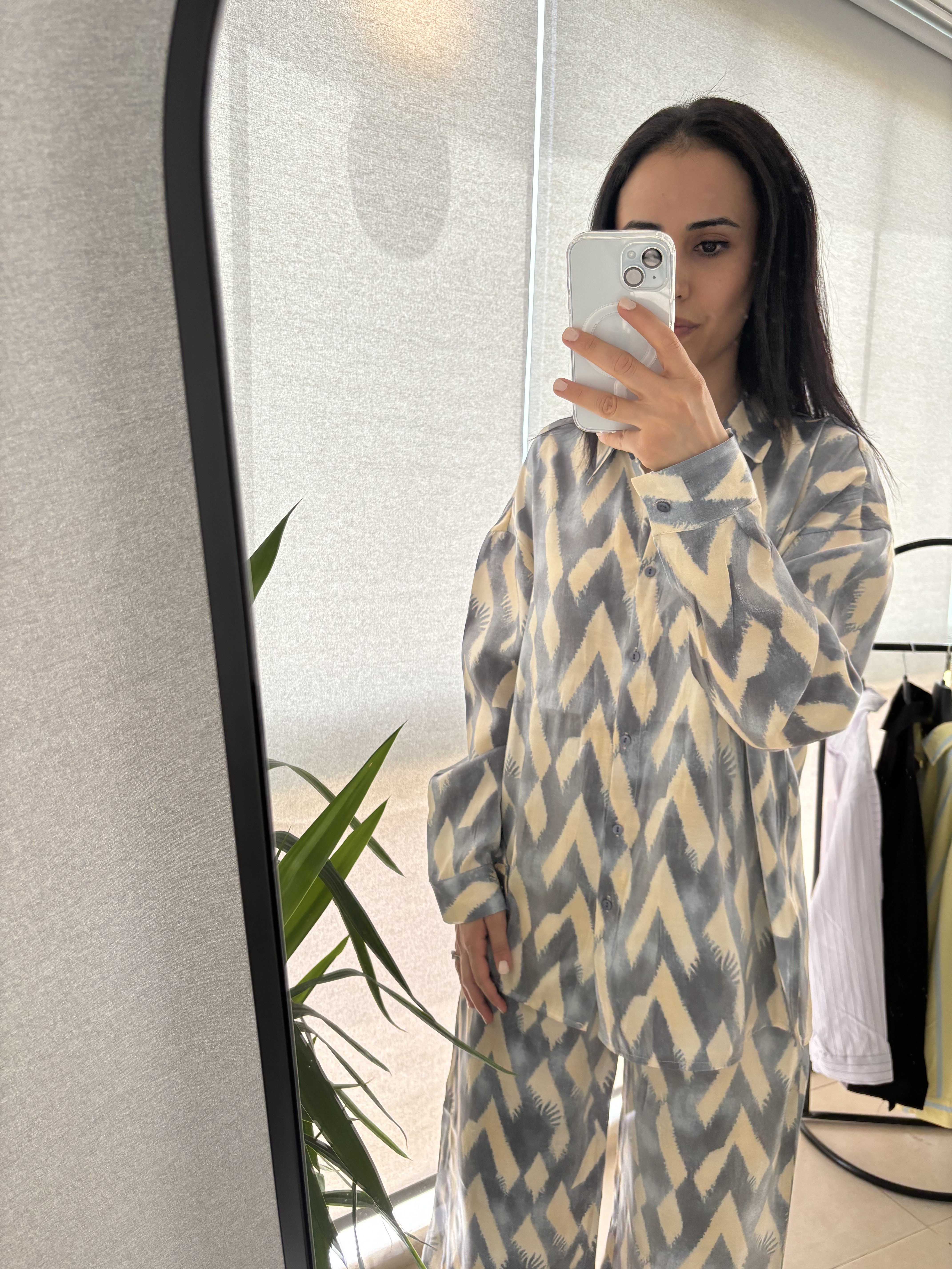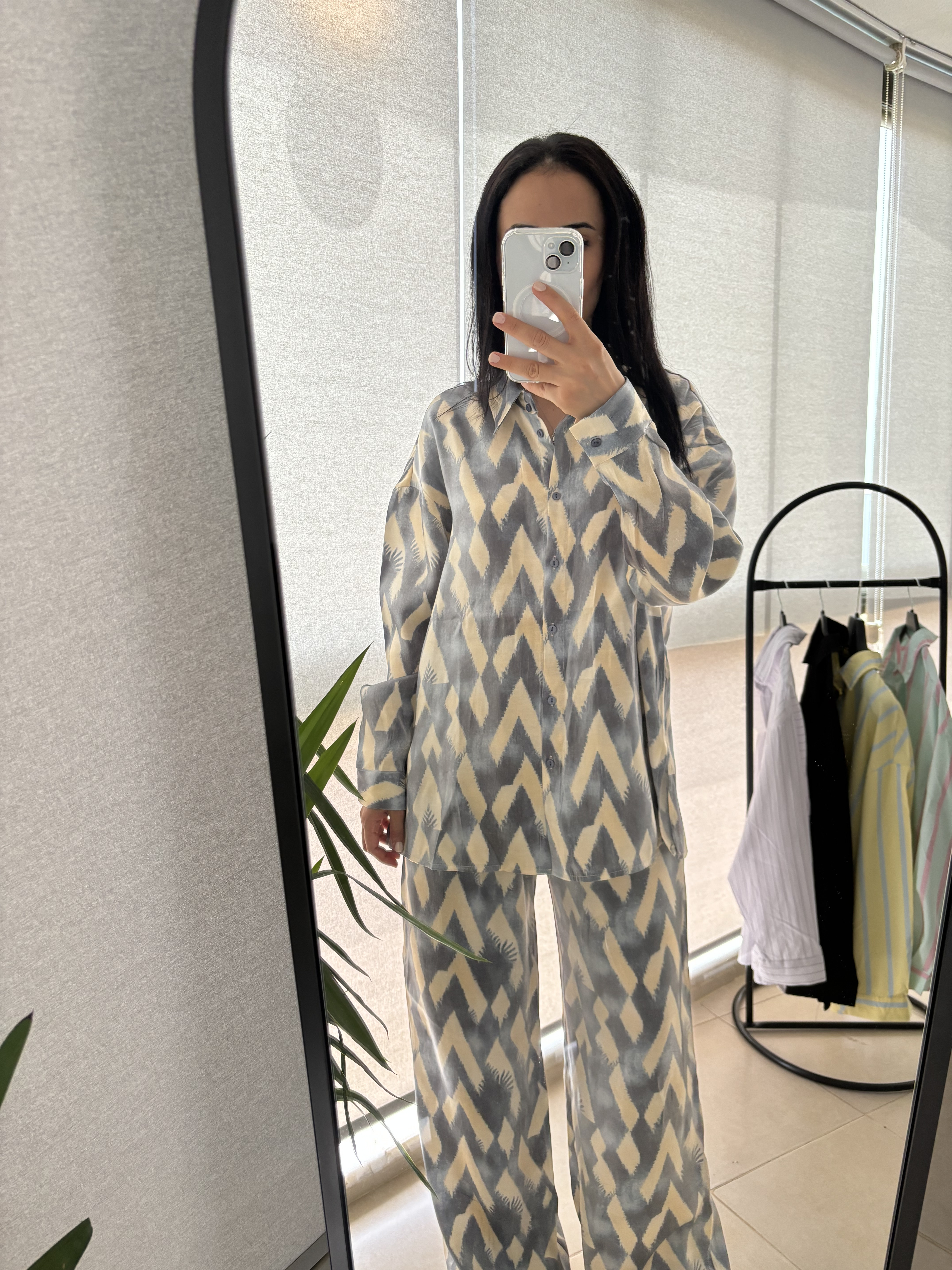 Geometrik desenli saten takım