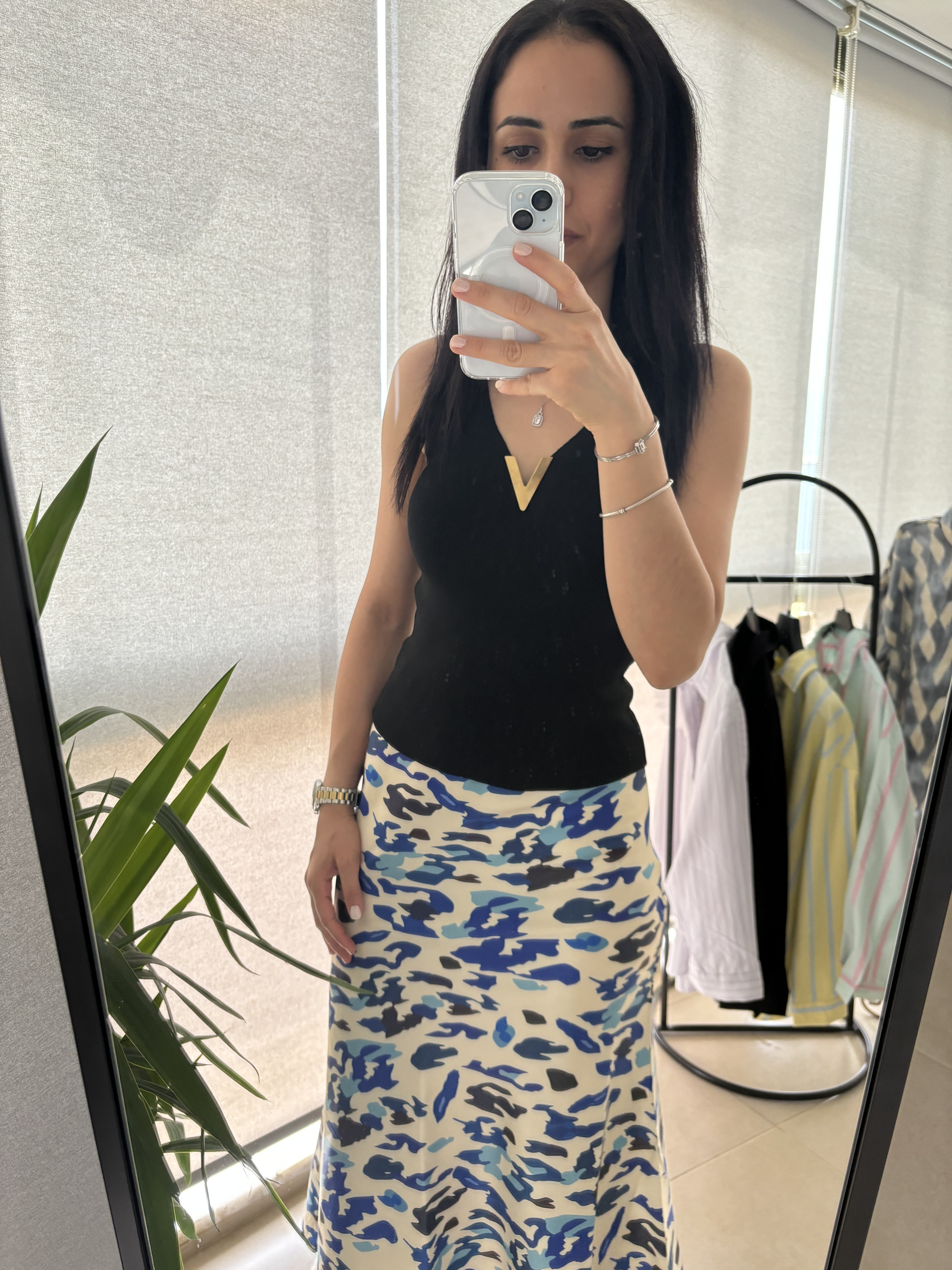 Mavi leo desenli saten etek
