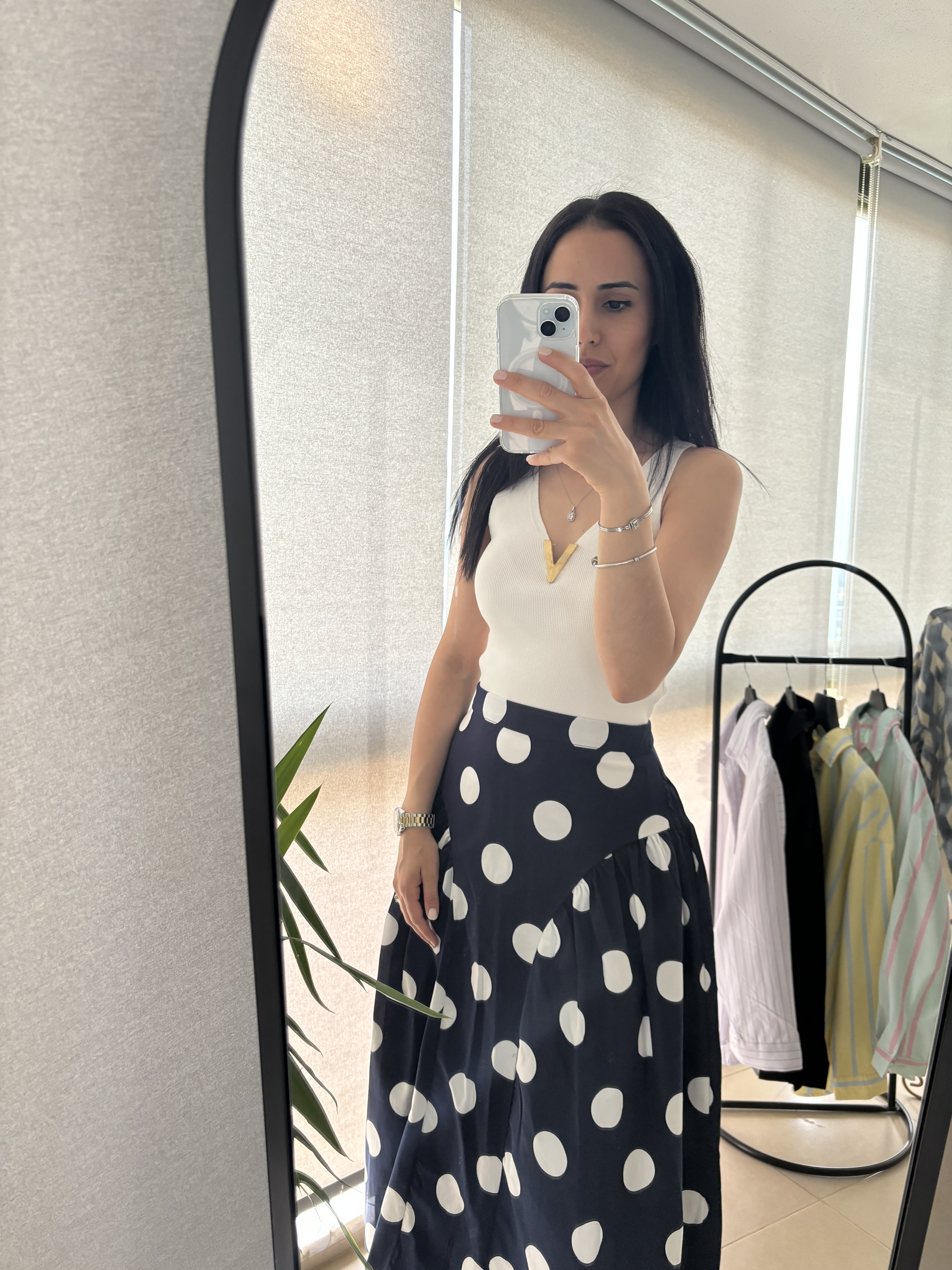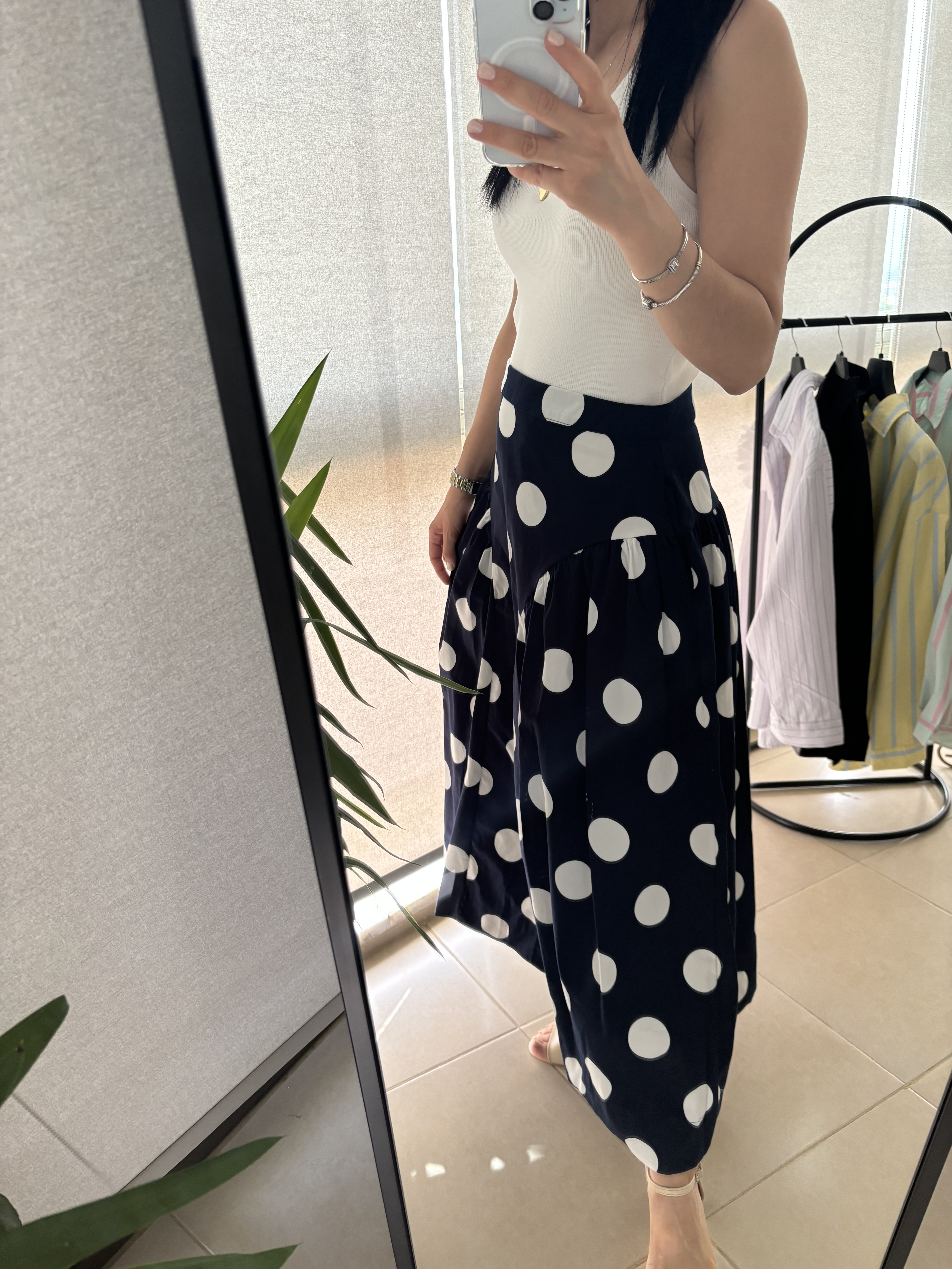 Puantiyeli cepli yüksek bel etek